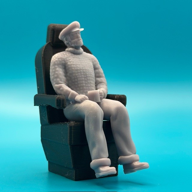 SJH Model Boat Fittings Captain sitting having coffee in his chair.